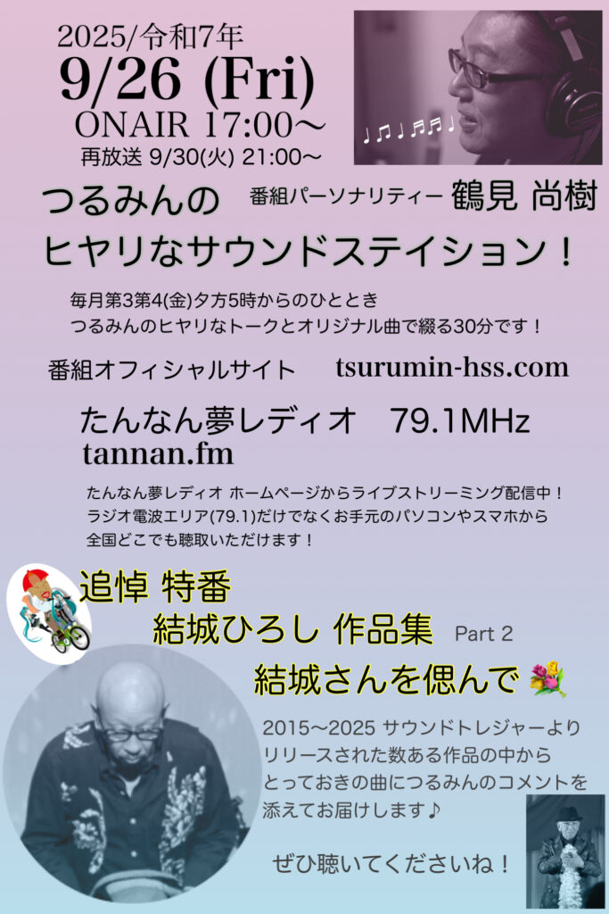 2025/9/26(金)17:00〜 たんなん夢レディオにてオンエアー♪