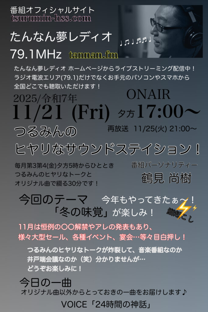 2025/11/21(金)17:00〜 たんなん夢レディオにてオンエアー♪
